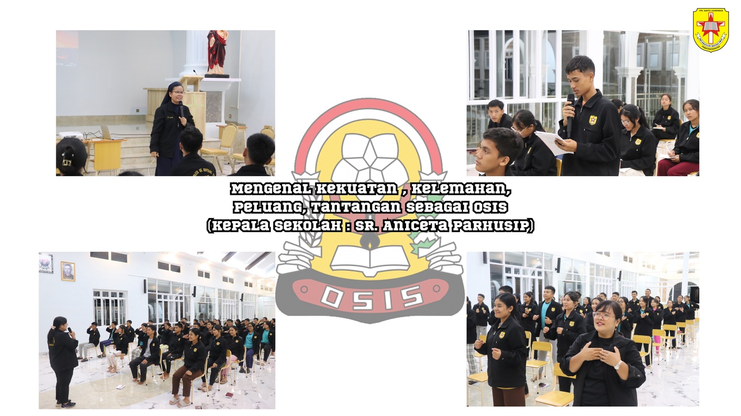 💡 Dalam rangkaian LDK OSIS T.P 2025/2026, para pengurus OSIS mendapat pembekalan dari Kepala Sekolah, Sr. Aniceta Parhusip melalui sosialisasi “Mengenal Kekuatan, Kelemahan, Peluang, dan Tantangan sebagai OSIS”. Kegiatan ini bertujuan agar pengurus OSIS mampu menyadari potensi diri, menghadapi tantangan, serta memanfaatkan peluang demi menjalankan peran dan tanggung jawabnya secara lebih bijaksana dan visioner. 🌟